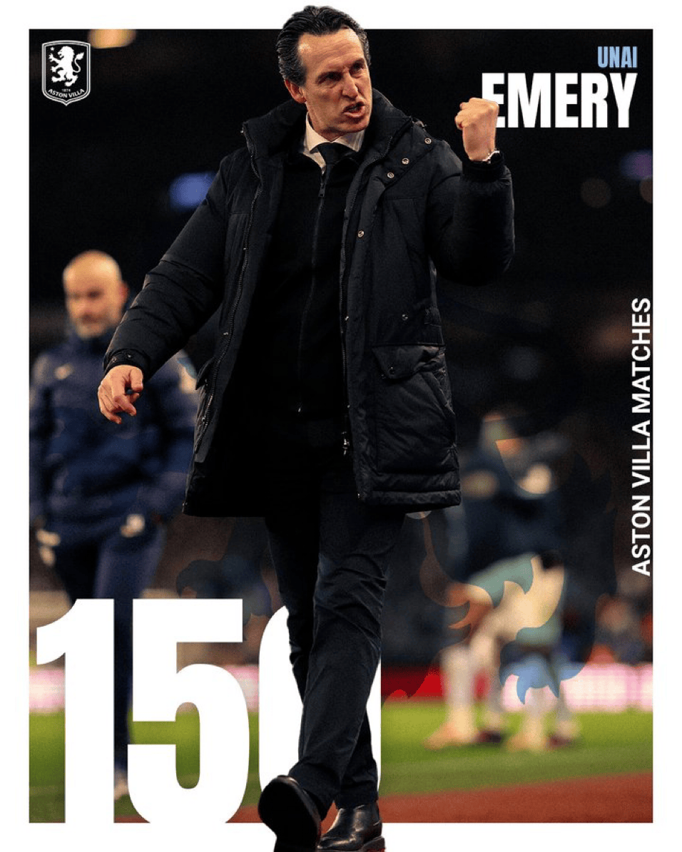 這是板埃埃梅里執(zhí)教維拉的第150場(chǎng)比賽,俱樂部官方發(fā)布了紀(jì)念海報(bào)。梅里目前埃梅里帶領(lǐng)球隊(duì)目前取得了79勝29平41負(fù)的迎執(zhí)戰(zhàn)績(jī)。