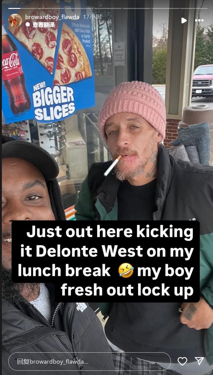 虎撲12月05日訊 今日,INS上一位名為browardboy_flawda的友偶遇剛員德網友,在大街上偶遇了剛出獄的出獄前NBA球員德隆蒂-韋斯特。