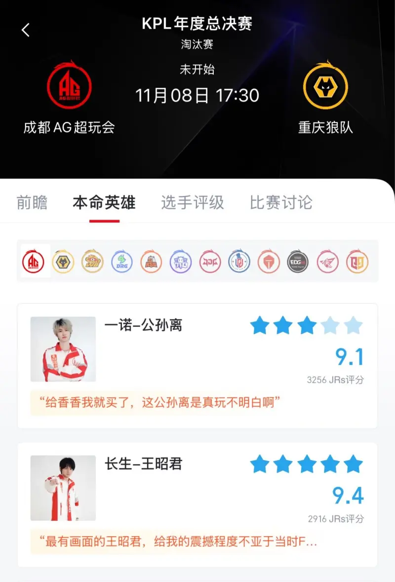 ??豐富內(nèi)容,多樣玩法:JRs可賽前進(jìn)入比賽直播間,為選手本命英雄打分評(píng)價(jià);賽后參與從夯到拉評(píng)級(jí),誰(shuí)是大鍋一目了然!