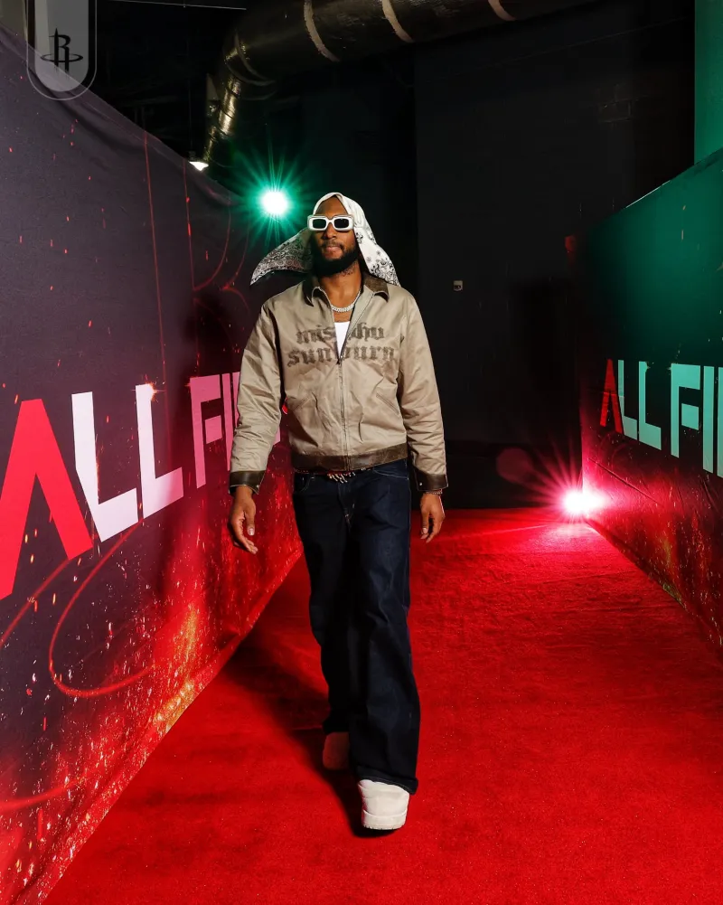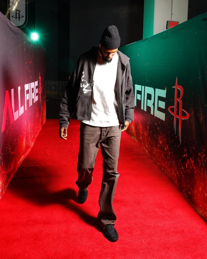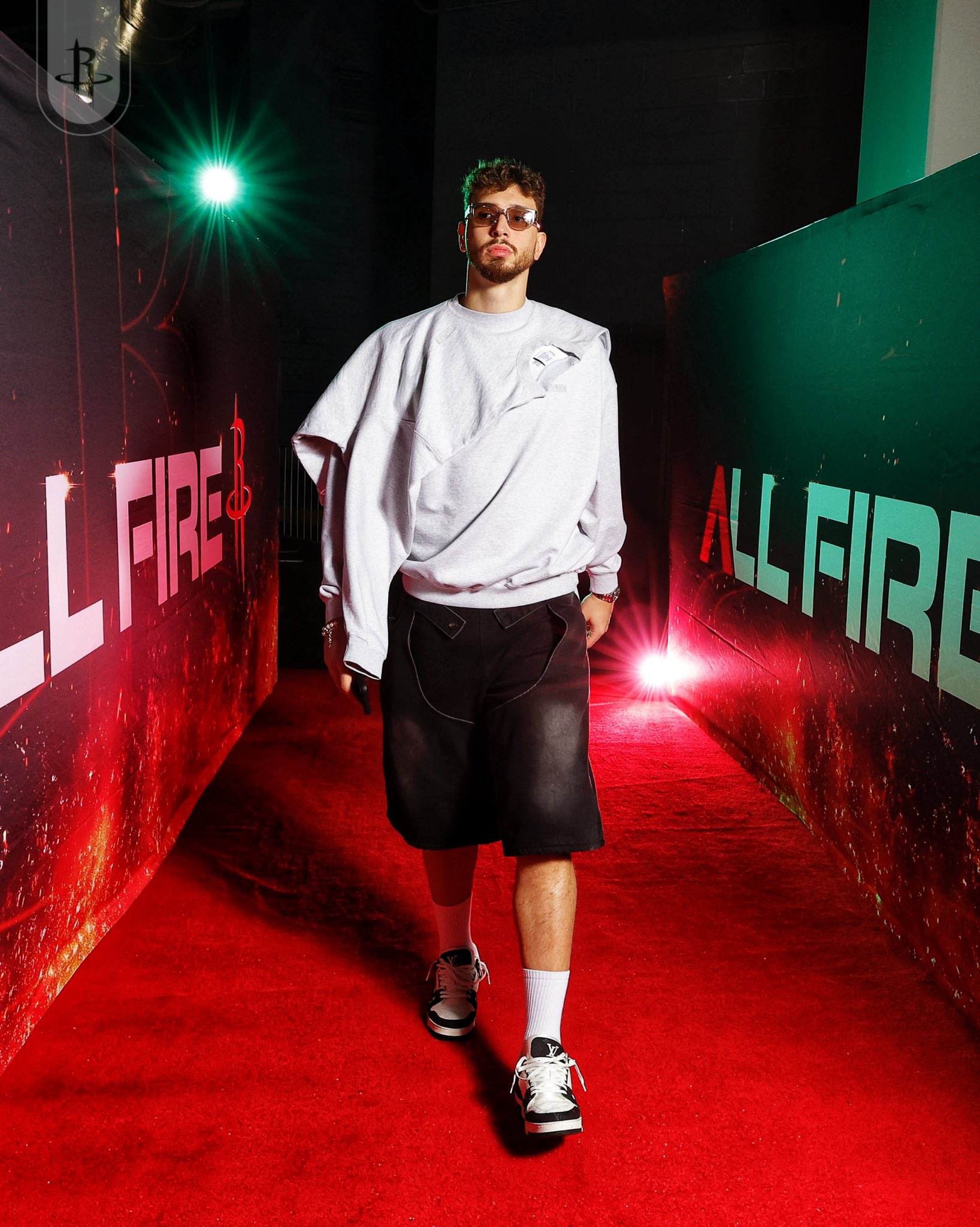 賽前,申京身穿時尚火箭社媒曬出球員步入球館的服飾照片。