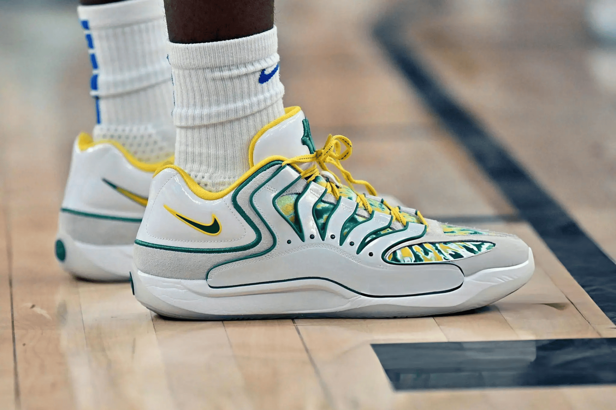 賽后,迪班察在比賽中穿著的由Nike和Fanatics Fest聯(lián)合制作的全球限量18雙定制版西雅圖超音速配色Nike KD18“Rookie Of The Year”被體育收藏卡品牌topps買下,并將swoosh部分切片放入topps" 1-of-1 Bowman U Now "親簽球星卡中永久收藏。
