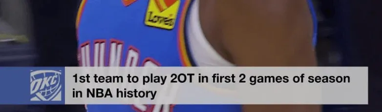 [流言板]雷霆賽季前兩場比賽全部進入雙加時,歷史首支球隊