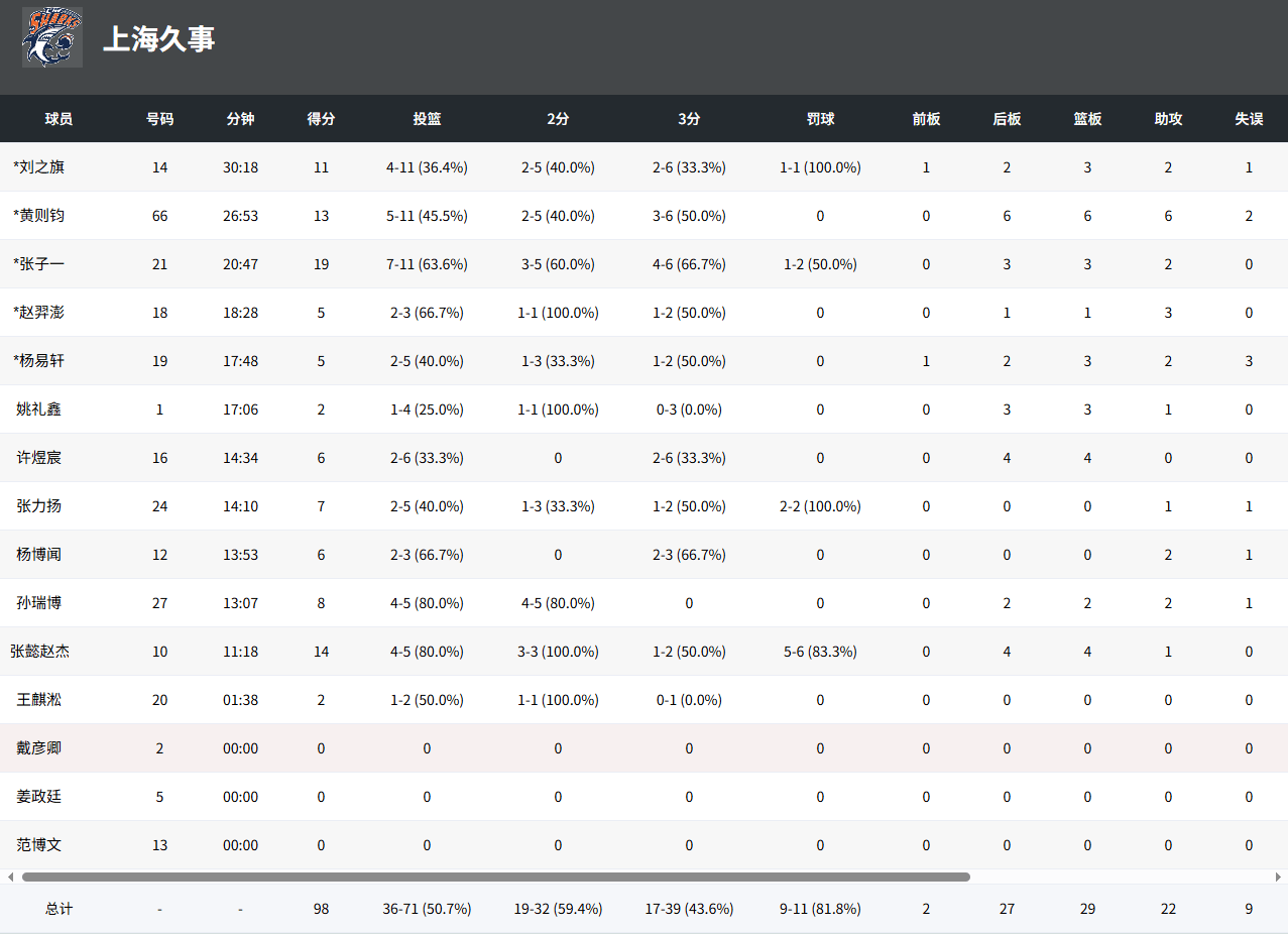 上海U17男籃:張子一19分、分上張懿趙杰14分、男籃黃則鈞13分
