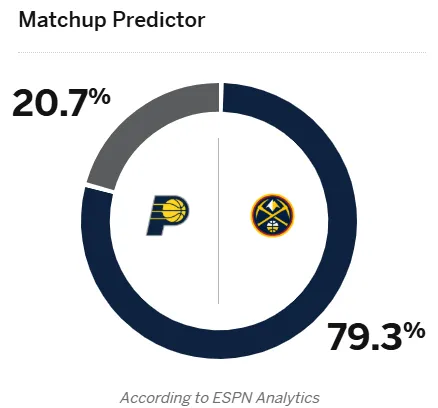 [流言板]ESPN預測明日掘金vs步行者比賽:掘金勝率高達79.3%