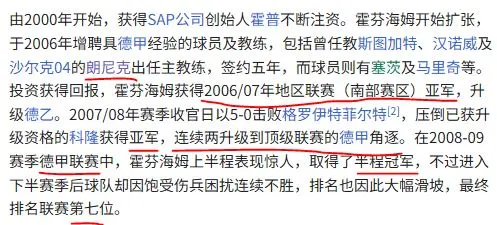 而“江湖騙子”朗尼克,率領(lǐng)霍芬海姆兩年兩連跳直升德甲且拿到半程冠軍,是為“霍村奇跡”。