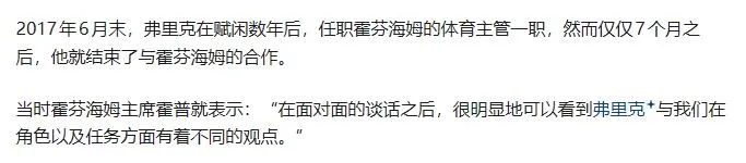 半年后弗里克二進(jìn)宮霍村擔(dān)任director,八個(gè)月后再次被主席提前終止了五年合同。