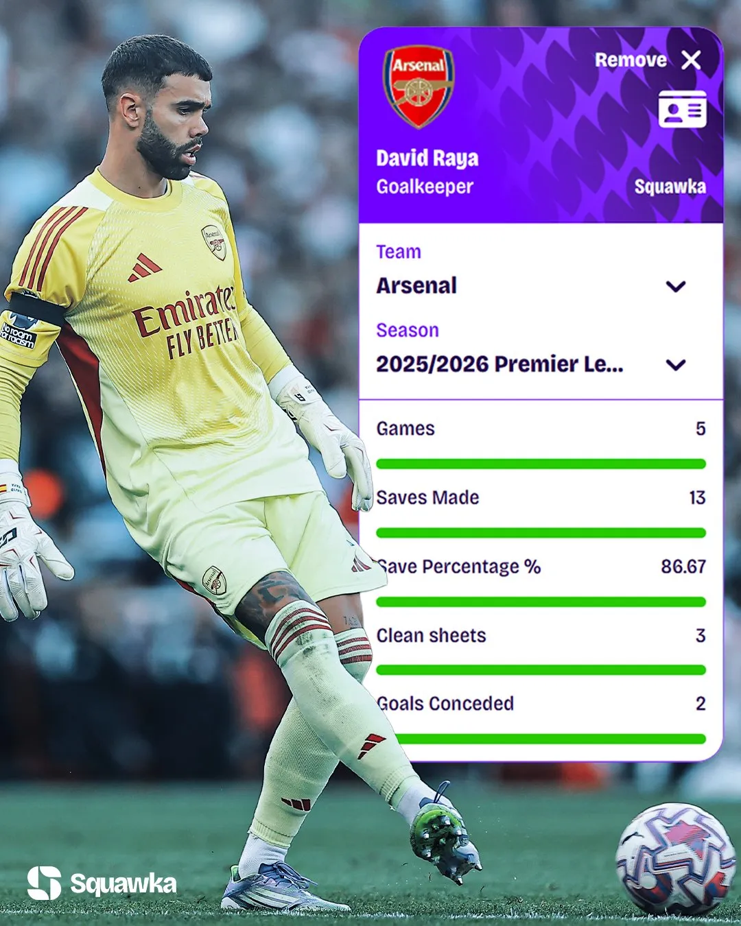 虎撲09月24日訊 Squawka數(shù)據(jù)統(tǒng)計,大衛(wèi)-拉亞是亞本英超本賽季至今英超撲救成功率最高的門將,成功率達到了86.67%。賽季