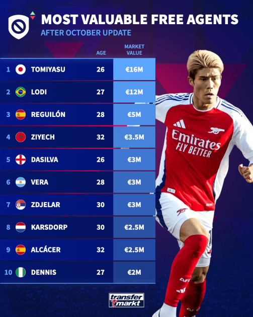 來源:轉(zhuǎn)會市場虎撲10月21日訊 德國轉(zhuǎn)會市場統(tǒng)計了現(xiàn)役自由球員的身價榜單,其中,價榜健洋吉隆本賽季與阿森納解約的富安日本后衛(wèi)富安健洋以1600萬歐元居首。
