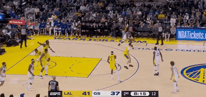虎撲10月06日訊 NBA季前賽,湖人對(duì)陣勇士的頓上比賽正在進(jìn)行中。