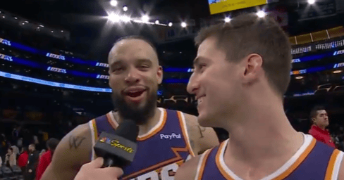 賽后接受采訪時(shí),狄龍-布魯克斯沖著隊(duì)友科林-吉萊斯皮喊道:“小惡棍,小惡棍,干得漂亮,我的小伙子!”