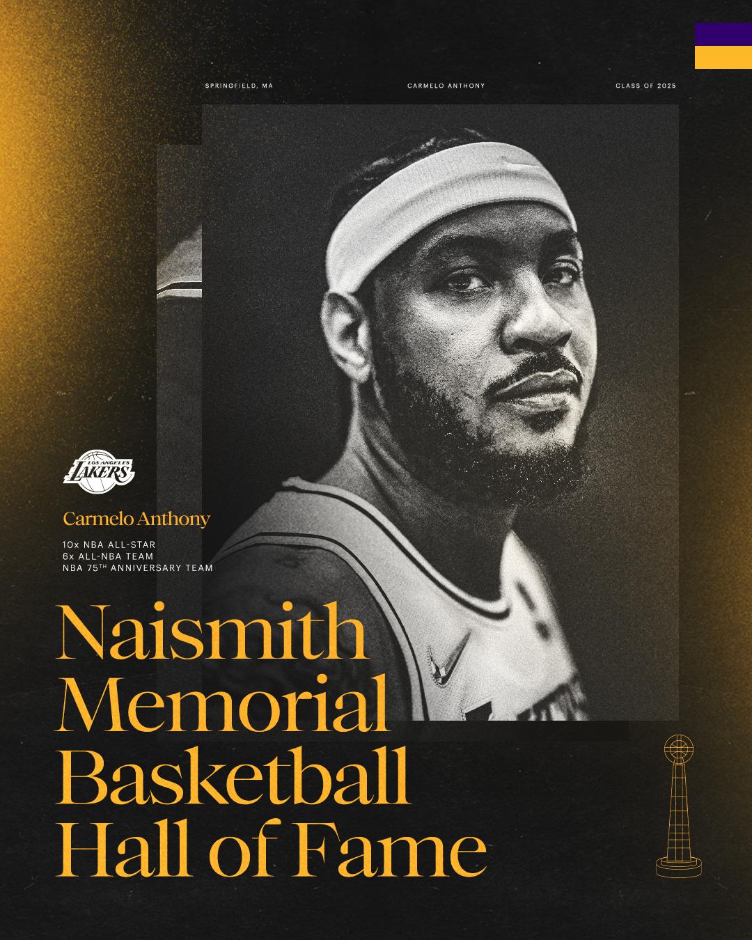 虎撲09月07日訊 今日,卡梅羅-安東尼正式入選2025屆NBA奈史密斯籃球名人堂。記名