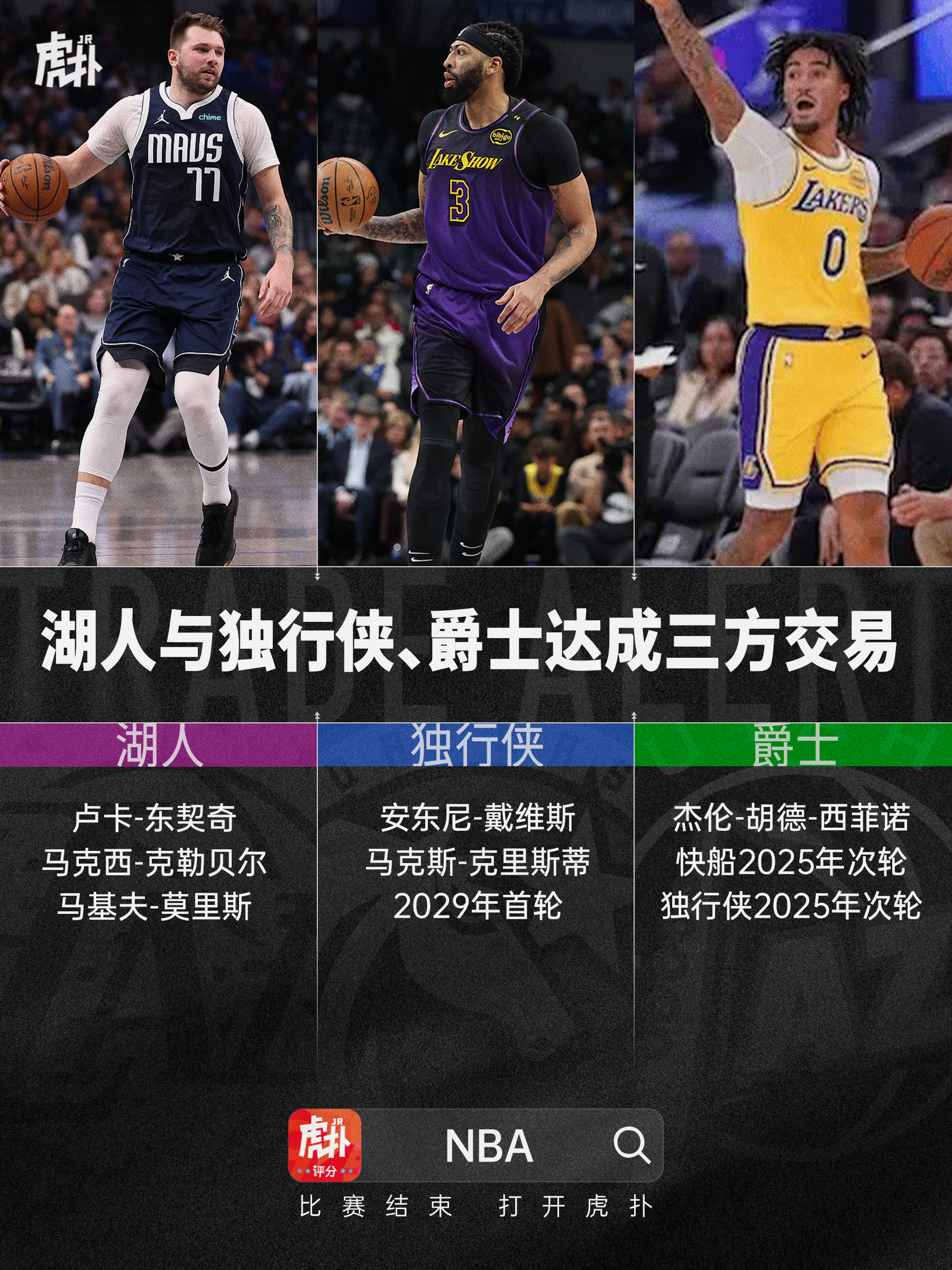 [流言板]湖人與獨(dú)行俠達(dá)成重磅交易,板湖送出戴維斯等人得到東契奇由虎撲籃球資訊 發(fā)表在籃球資訊 https://bbs.hupu.com/502