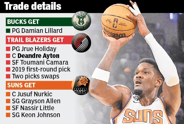 兩年前的今天,三方大交易達(dá)成:利拉德加盟雄鹿、艾頓霍勒迪卡馬拉等加盟開拓者、努爾基奇阿倫等加盟太陽。