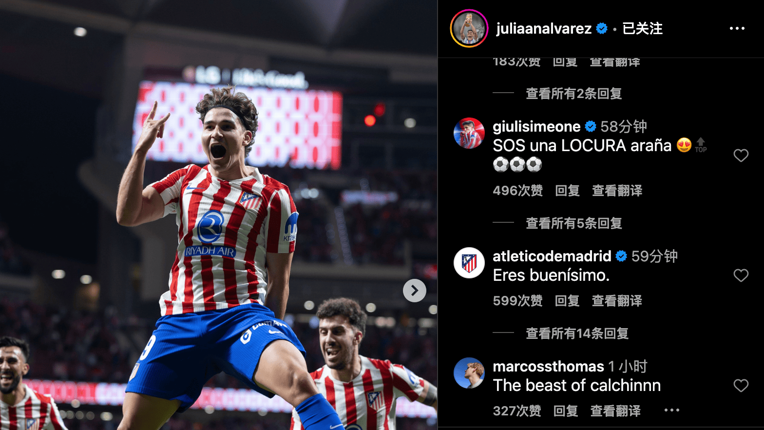 賽后,板英阿根廷前鋒更新了Instagram:?????? ???