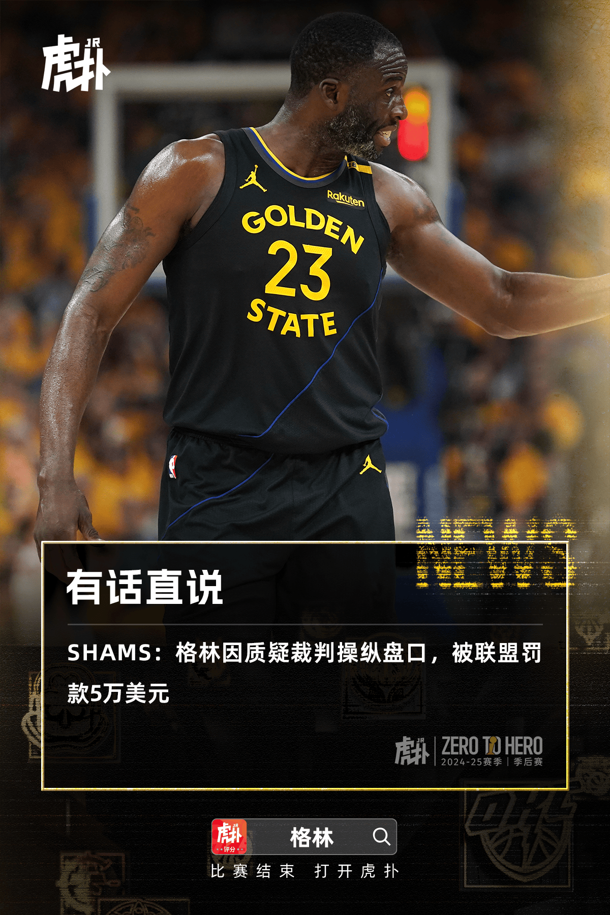 [流言板]Shams:格林因質(zhì)疑裁判操縱盤口,流言聯(lián)盟被聯(lián)盟罰款5萬美元由虎撲籃球資訊 發(fā)表在籃球資訊 https://bbs.hupu.com/502