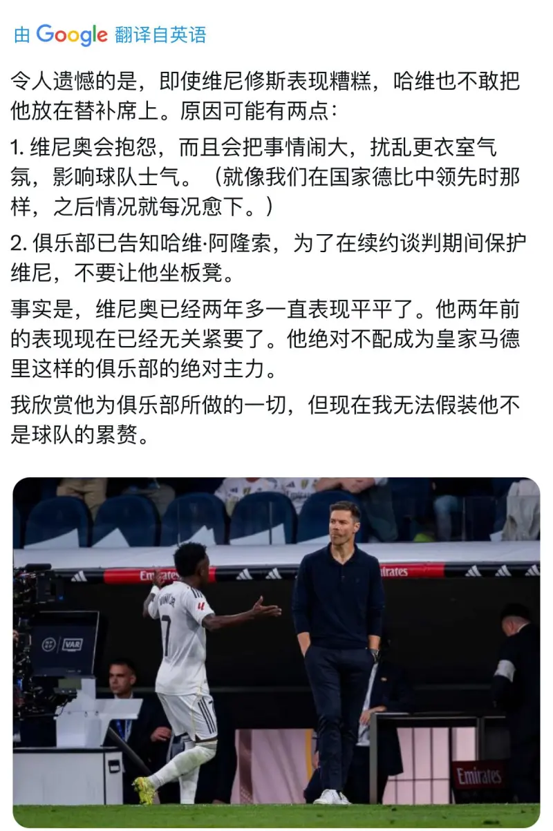 轉(zhuǎn):令人遺憾的轉(zhuǎn)令糟糕是,即使維尼修斯表現(xiàn)糟糕,人遺