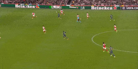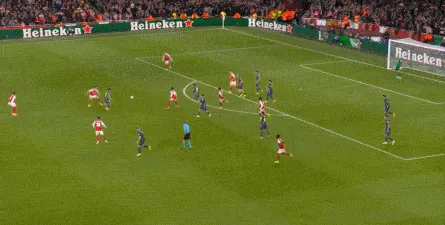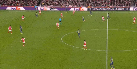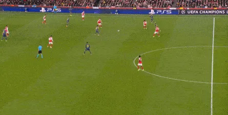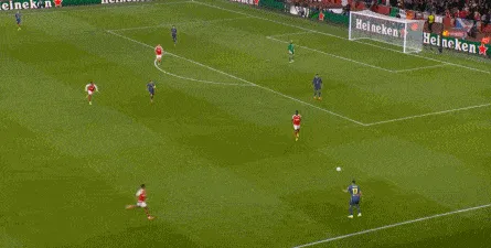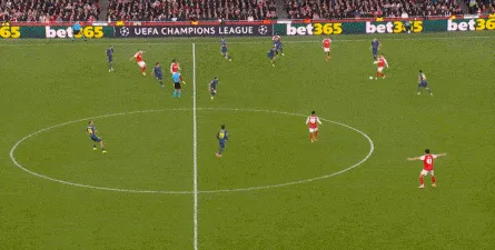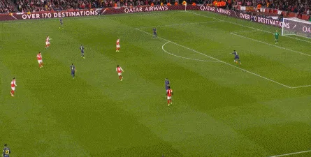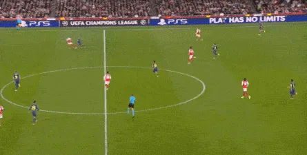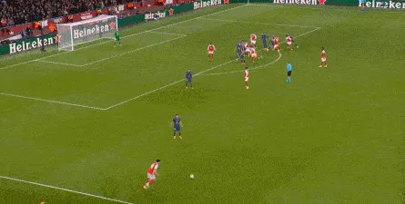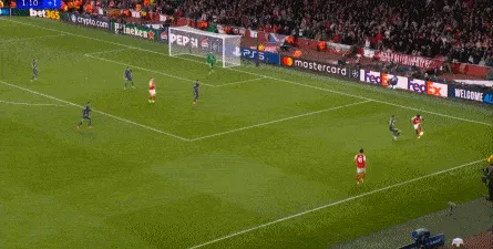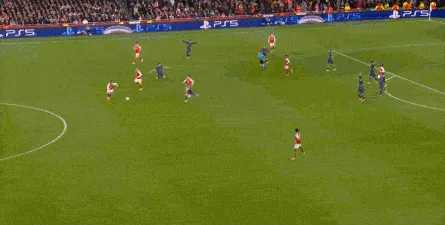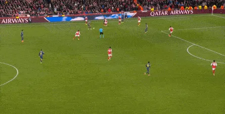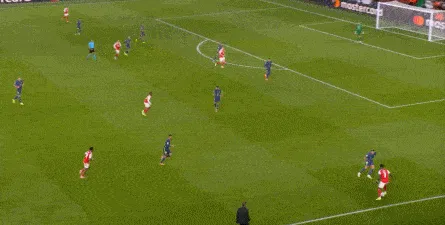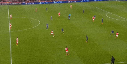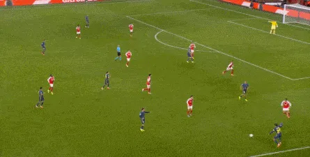 而在阿森納這邊,在主場(chǎng)作戰(zhàn)的情況下,他們?cè)谇皥?chǎng)和丟球后的逼搶就比較積極,并且在第4分鐘,因此打出了一次險(xiǎn)些破門(mén)的進(jìn)攻: