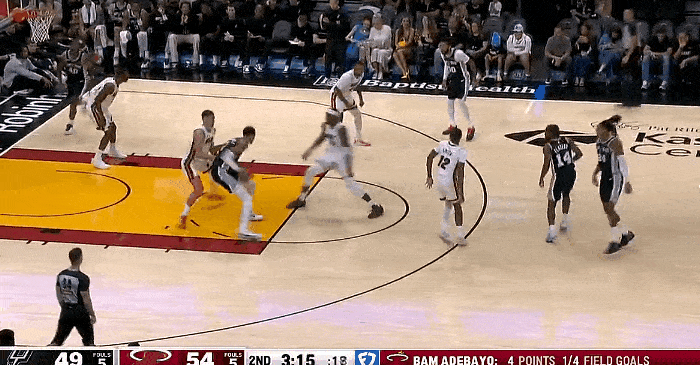 虎撲10月09日訊 NBA季前賽,熱火對(duì)陣馬刺的起傳球被搶斷比賽正在進(jìn)行中。