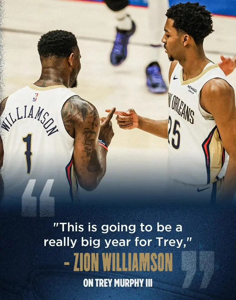 新賽季,在送走兩位核心的情況下,他們還可以排出錫安+瓊斯+墨菲+普爾+穆雷這樣一套不錯(cuò)的首發(fā),如果穆雷不能按時(shí)回來,米西可以提到首發(fā),增加場上高度。球隊(duì)輪換球員還有盧尼,薩迪克-貝、阿爾瓦拉多、霍金斯,2025年第13順位選中的奎因。
