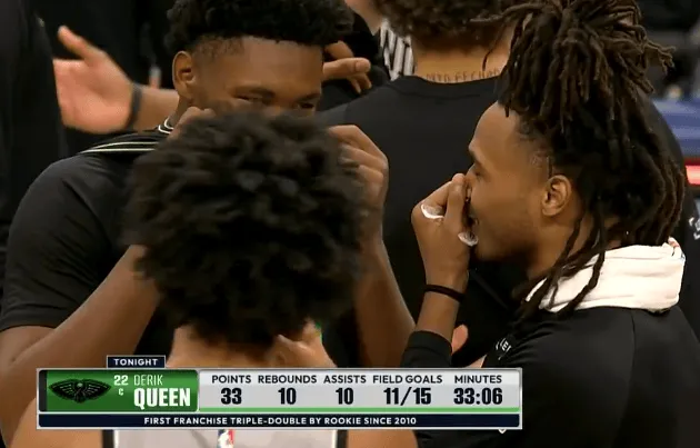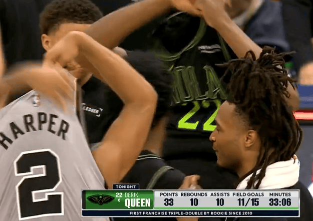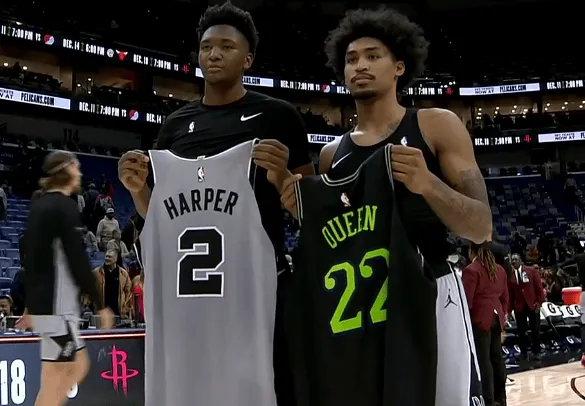 賽后,哈珀互換鵜鶘球員奎因與卡斯?fàn)栁孀旖徽劊蛞码S后與哈珀互換球衣。板奎