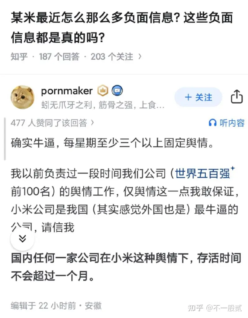 一星期至少一個(gè)輿情,哪家公司能抗住,個(gè)輿現(xiàn)在互聯(lián)網(wǎng)小米已經(jīng)罵聲一片了,恐怖就看能抗多久了