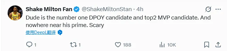 -(188贊)這家伙是最佳防守球員頭號候選人,MVP候選人排名前二。而且還沒到巔峰期。可怕。