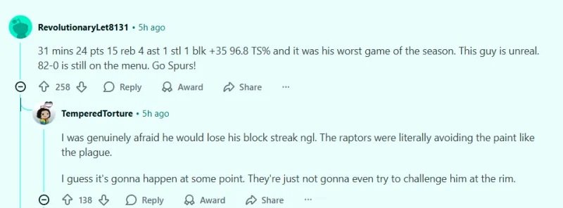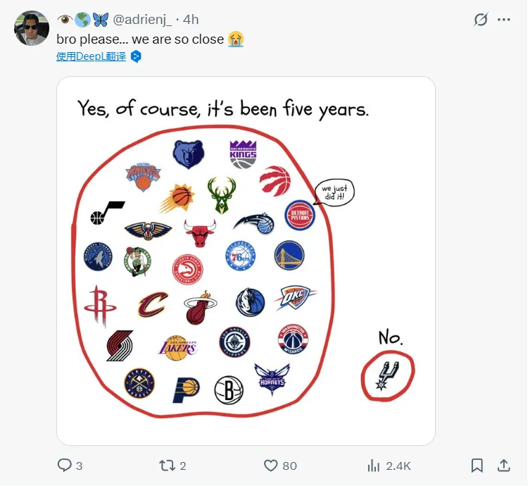 這家伙簡直不屬于現(xiàn)實(shí)。82勝0負(fù)的夢想仍在菜單上。加油馬刺!