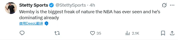 馬刺主場背靠背121-103擊敗猛龍,取得4連勝保持賽季開局不敗戰(zhàn)績。文班亞馬繼續(xù)在攻防兩端帶來統(tǒng)治級別的發(fā)揮,他出場30分39秒,投籃8中7,罰球10中10貢獻(xiàn)24分15籃板4助攻,正負(fù)值高達(dá)+35。