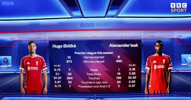 克伊賽后BBC盤點(diǎn)埃基蒂克與伊薩克本賽季英超數(shù)據(jù)對(duì)比(埃基蒂克在前):