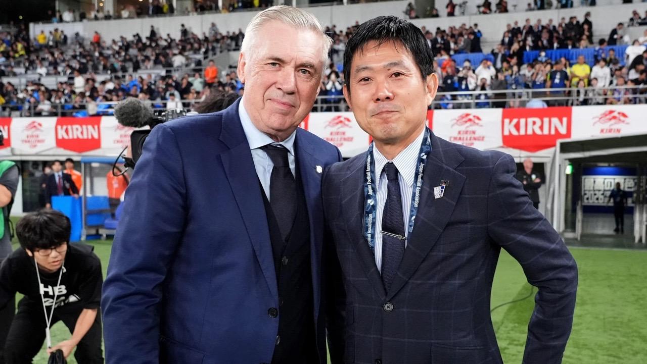 虎撲10月14日訊 在剛剛結(jié)束的友誼賽中,日本隊(duì)3-2逆轉(zhuǎn)戰(zhàn)勝巴西隊(duì)。賽后,日本隊(duì)主帥森保一在場(chǎng)邊接受了瞬采。