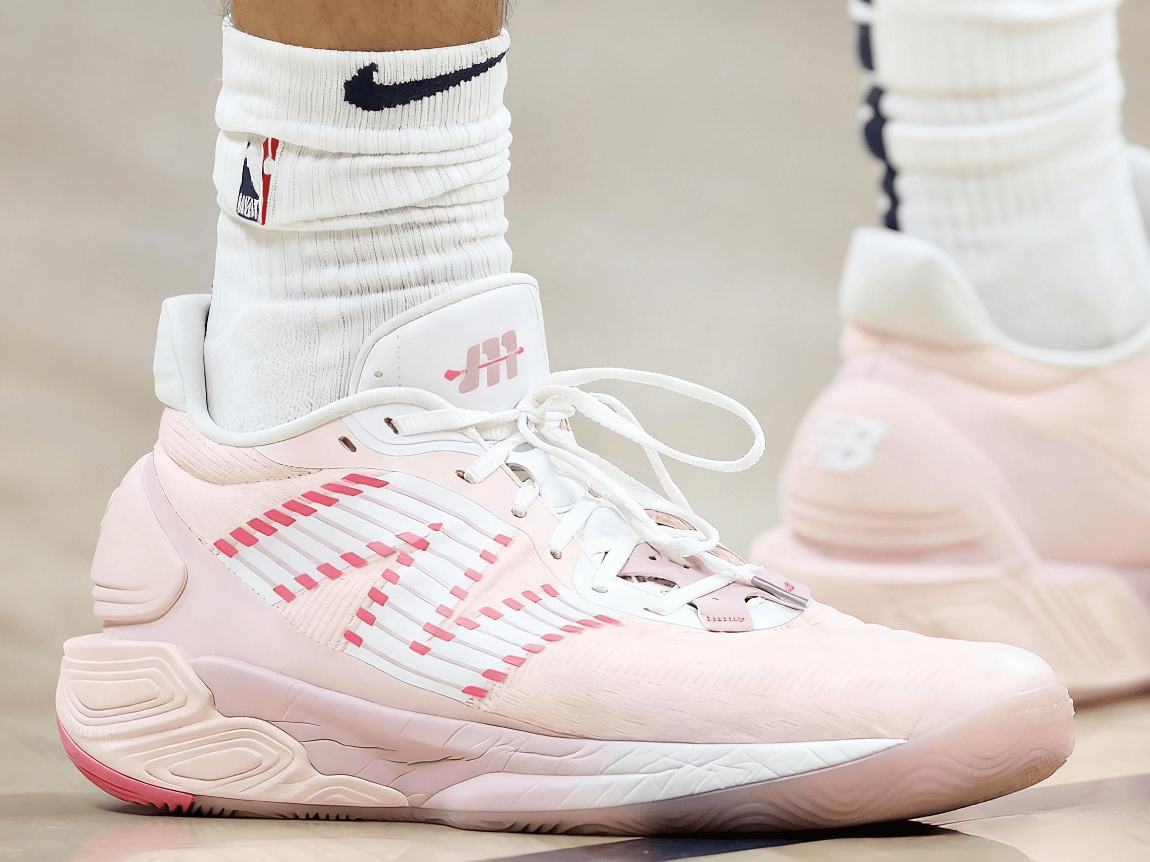 比賽中,粉色默里上腳淡粉色New Balance Two Wxy v5 PE。得到分