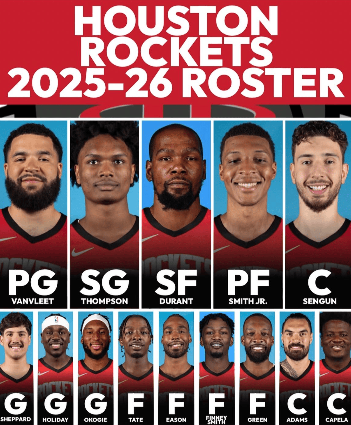 圖中列出了火箭新賽季的陣容名單。