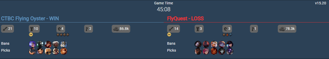 此前這一紀(jì)錄是世界賽用時(shí)最瑞士輪CFO vs FLY的BO3第一局,用時(shí)45分08秒。板G本屆
