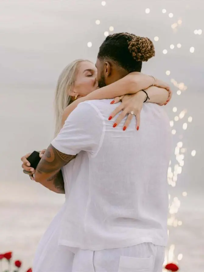 虎撲09月24日訊 今日,獨行俠自媒體MFFL NATION轉(zhuǎn)發(fā)丹吉洛-拉塞爾與其未婚妻在訂婚儀式的婚妻合影照片,并配文: