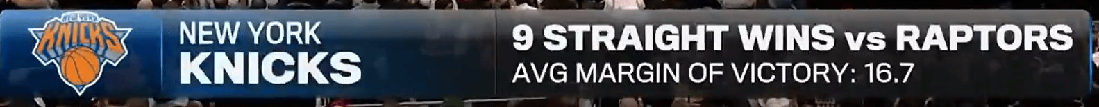 [流言板]苦主!尼克斯對(duì)陣猛龍已取得9連勝,平均每場(chǎng)要贏16.7分