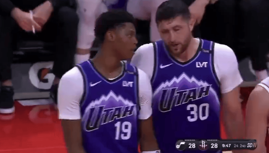 在比賽當(dāng)中,中對火箭球員凱文-杜蘭特對著爵士新秀埃斯-貝利噴垃圾話: