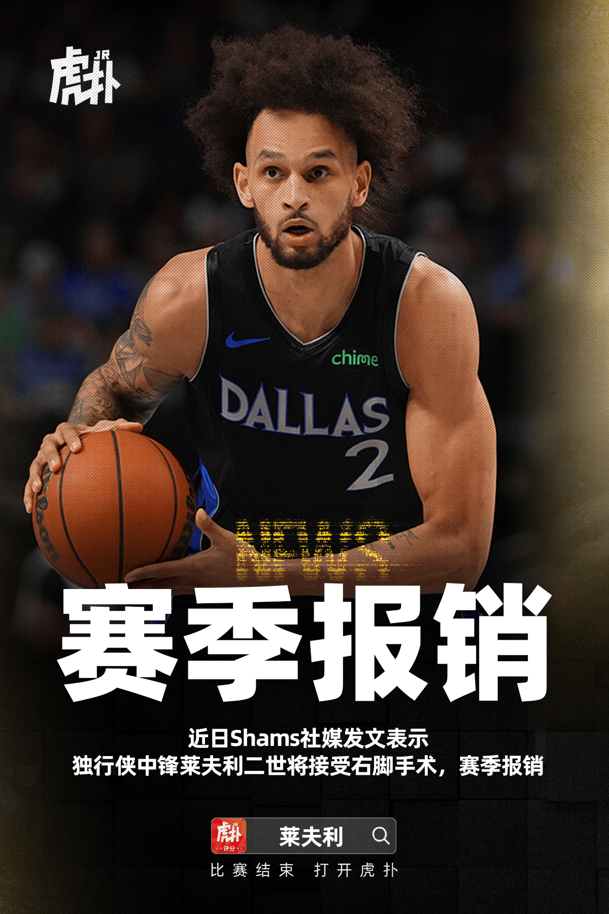 Shams表示:“達(dá)拉斯獨(dú)行俠中鋒德里克-萊夫利二世將接受右腳手術(shù),將接腳手季提賽季提前報(bào)銷(xiāo),受右術(shù)賽以解決持續(xù)的前報(bào)疼痛不適。”