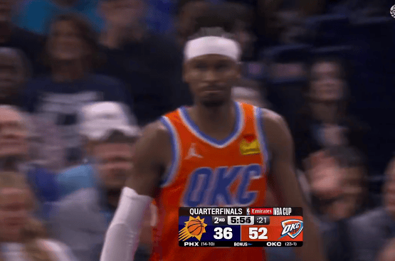 NBA杯四分之一決賽,雷霆對(duì)陣太陽(yáng)的第節(jié)到分比賽正在進(jìn)行中。