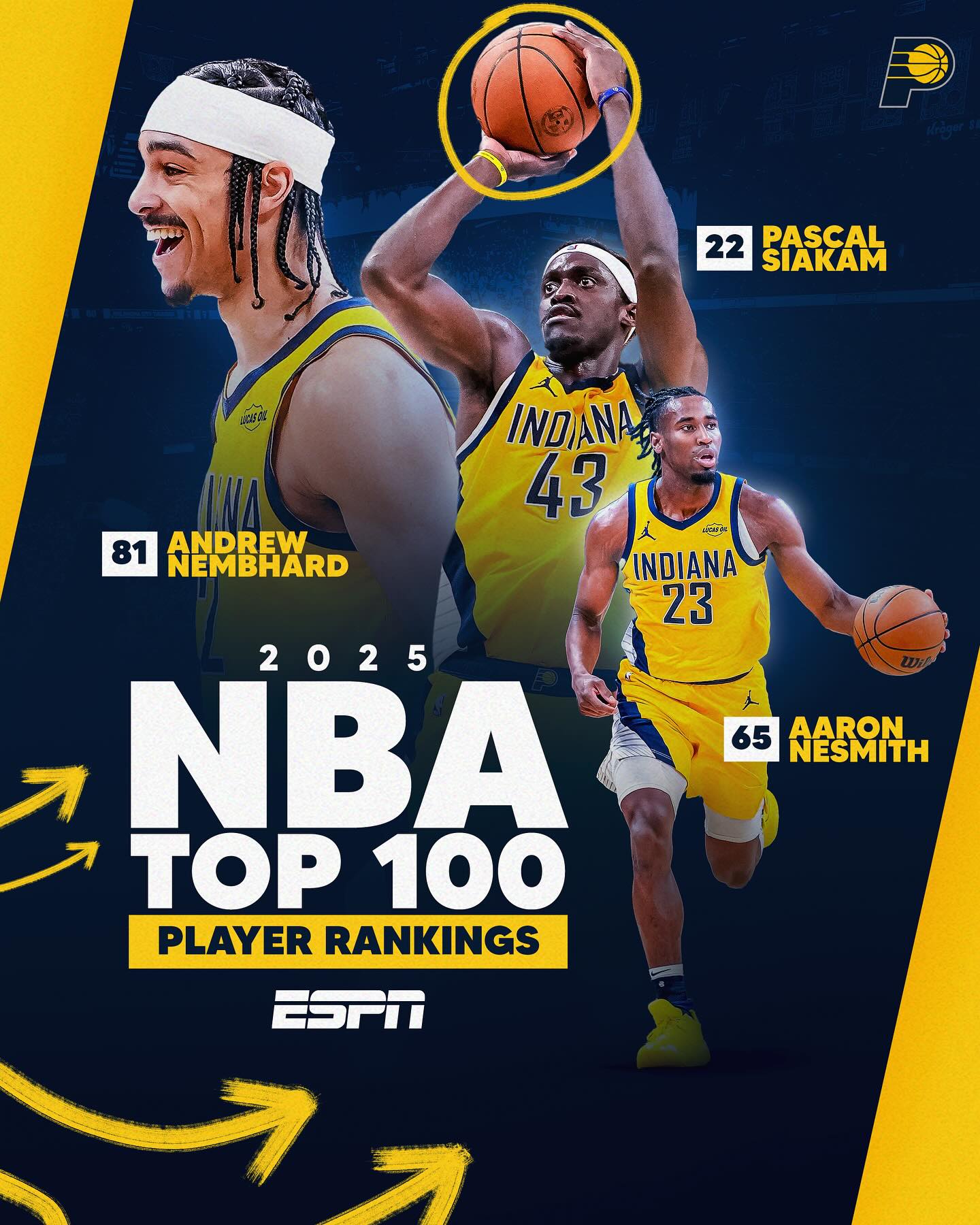 虎撲09月26日訊 今日,步行者官方更新社交媒體,行者新賽星榜曬出海報(bào)慶祝三員大將入選ESPN所評(píng)選的官媒新賽季百大球員。