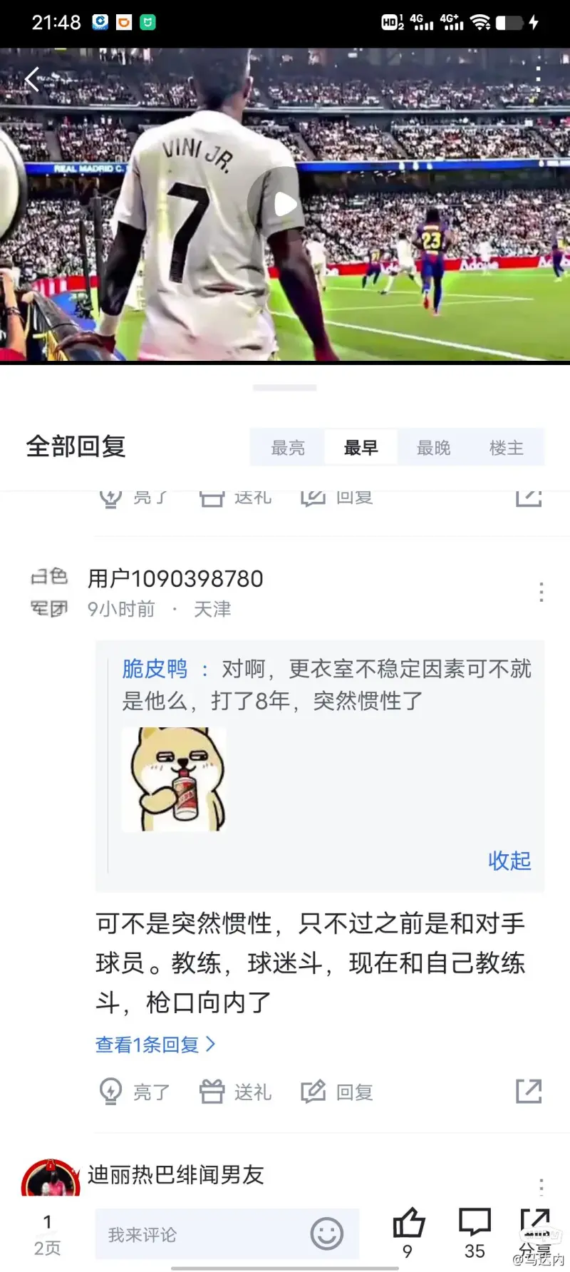 維尼修斯都來皇馬第八年了,還要給維尼修斯編一個更衣室刺頭人設(shè)。白色逼什么槍口突然向內(nèi)這種鬼話都說的軍團(tuán)出來。對了,多恨這就是維尼原來那個白色軍團(tuán)小號。前段時(shí)間回他,白色逼什么人玩虎撲一個號不夠用后,軍團(tuán)改名了