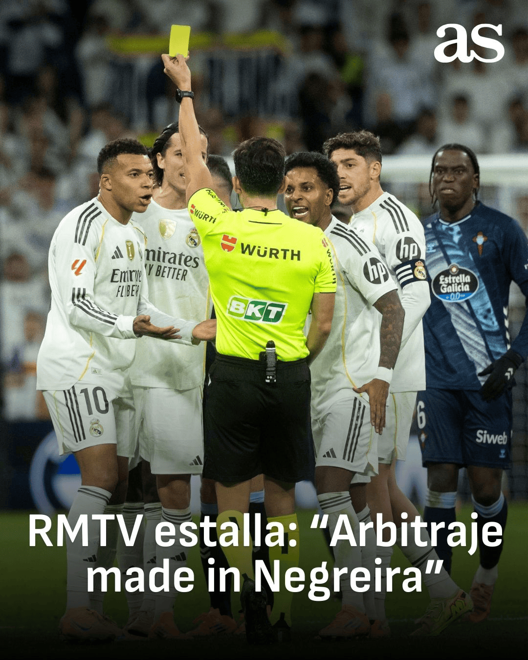 虎撲12月08日訊 皇馬0-2不敵塞爾塔,裁判全場出示7黃3紅,內(nèi)格那樣阿斯報引用皇馬TV賽后評價。時期