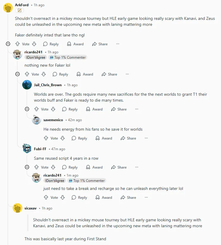 在剛剛結(jié)束的2026 KeSpa杯HLE對戰(zhàn)T1的比賽中,HLE以2-1的比分戰(zhàn)勝T1成功晉級下一輪,本場比賽引發(fā)了Reddit網(wǎng)友的熱議,部分內(nèi)容翻譯如下: