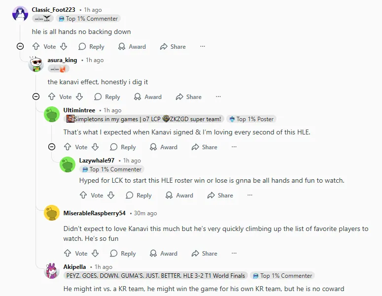 對LCK的開賽感到興奮,這支HLE的陣容無論輸贏都會全是操作,觀看起來會很有趣。