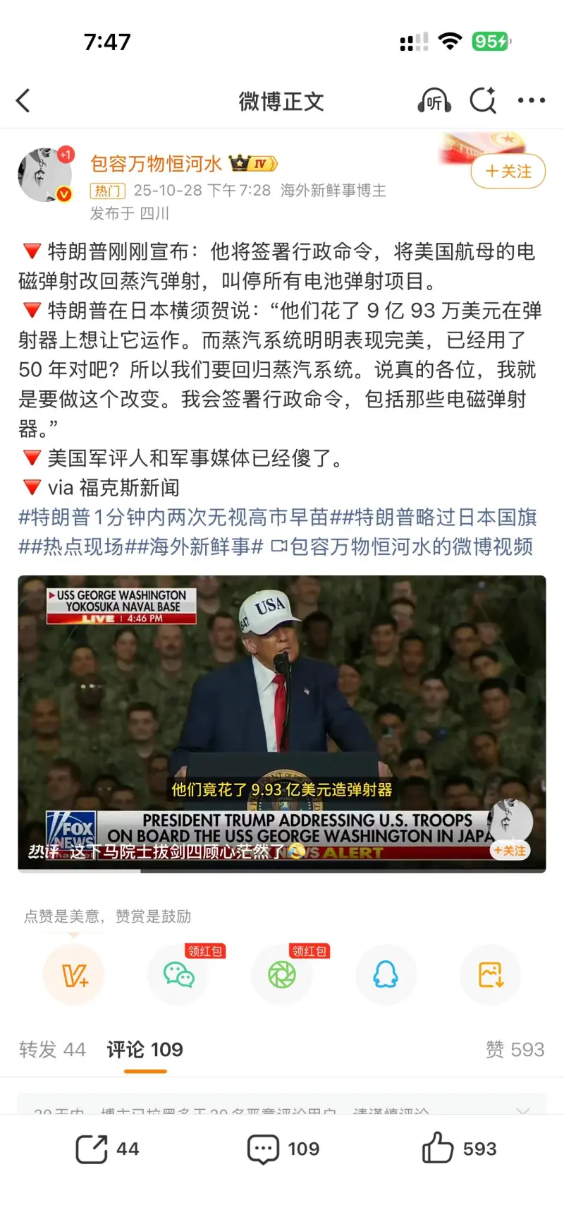 特朗普準備簽署行政命令,叫停航母的電磁彈射?