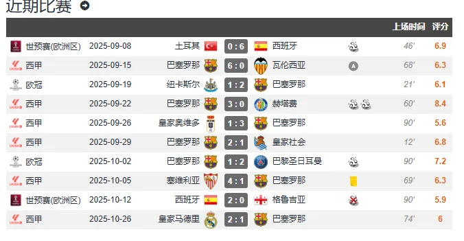 德比 出場77分鐘,對抗0成功,中鋒之殤傳球15次,費蘭射門2次,托雷防守0貢獻。巴薩