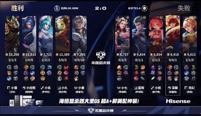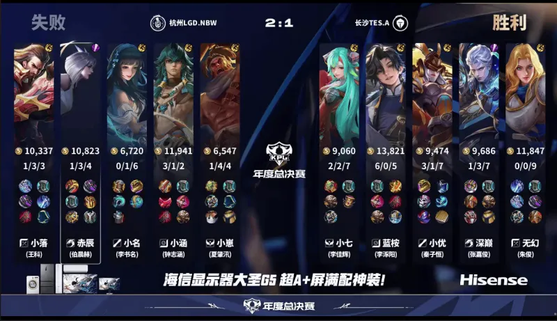 小名王昭君先手被擊殺,小落關(guān)羽冰甲留人,賽后LGD打出1換3