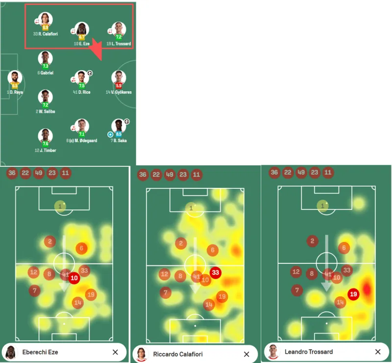 厄德高傷缺后,艾澤塔子使用“三工兵中場,正改萊斯-蘇維-梅里諾”,變廠打了三場比賽。防守硬度看起來是夠了,但進(jìn)攻組織不起來,雖然我們的鋼鐵防線,每場比賽最多丟 1 球,然而還是 0:1 輸給了利物浦,1:1 平了曼城。
