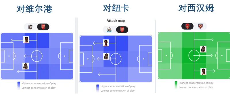 從上賽季起,我廠比賽進(jìn)攻往往有 40% 加 集中在右路,但這樣單一的進(jìn)攻方向,也讓英超對手學(xué)會只要集中防守力量堵住我廠右路,兵工廠的進(jìn)攻就廢了一半。