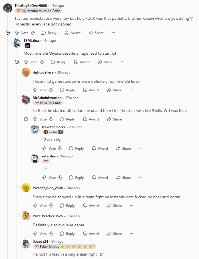 TES,我們的預(yù)期已經(jīng)很低了,但我靠,真是太慘了。Kanavi兄弟你在干什么??說真的,每一路都被打爆了。