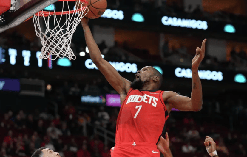 本場比賽,火箭球員凱文-杜蘭特出戰(zhàn)31分鐘,16投9中,其中三分球4投1中,罰球5投5中,得到24分3籃板8助攻1封蓋。